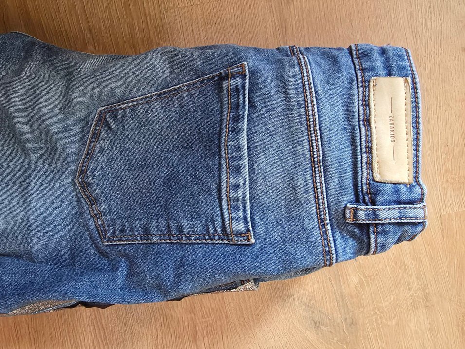 Düğmeli, parlak mavi renkte, normal boy midi uzunluğunda, fitted kesim çocuk denim pantolon.