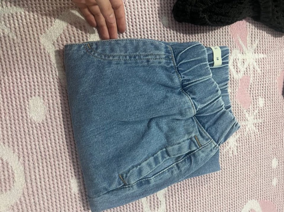 Düğmeli, rahat kesim mavi kot pantolon. Normal boyda, gündelik kullanıma uygun sade ve normcore tarzda kadın kotu.