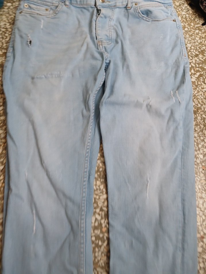Mavi renkli, düğmeli ve rahat kesim kot pantolon. Normal midi boyda ve yumuşak denim kumaştan yapılmıştır. Günlük rahat kullanıma uygundur. likrali