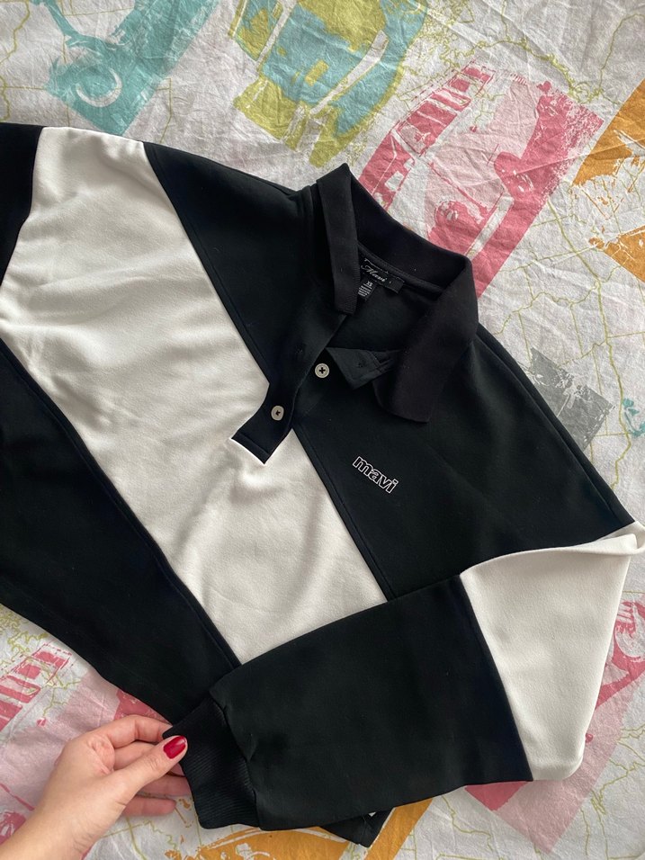 Pamuklu, uzun kollu, düğmeli ve yakalı . Siyah beyaz baskılı, rahat kesim, günlük kullanım için uygundur.