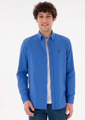 İndigo Düğmeli Uzun Kollu Erkek Gömlek