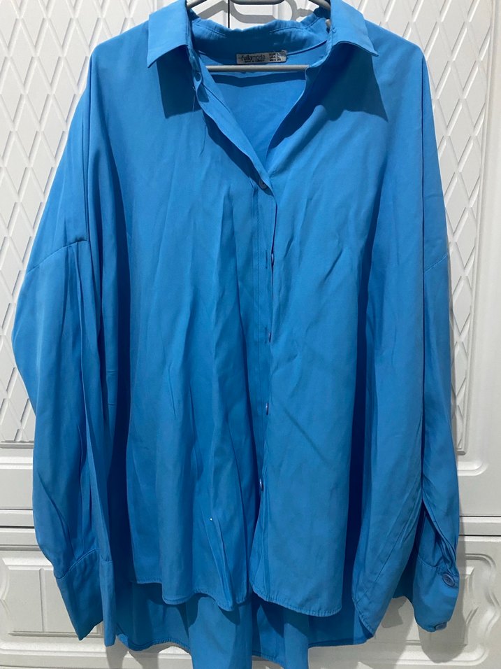 Mavi Düğmeli Uzun Kollu Kadın Gömlek