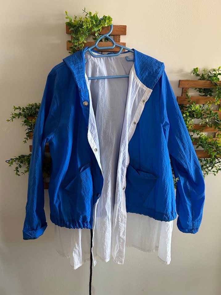 Mavi kdüğmeli, uzun kollu, normal boy yağmurluk ceketi, rahat kesim ve açık yaka detaylıdır.içten çıkan beyaz detayı. yepyeni 1 kere giydim. hiç bir defosu sıkıntısı yok. tam boy 70 koltuk altı eni 57 dir. salaştır.m ve l bedene uyar. tayt üstü rahat olur. iade asla kabul etmem. ürünümün kalitesine ve yeniliğine kefilim