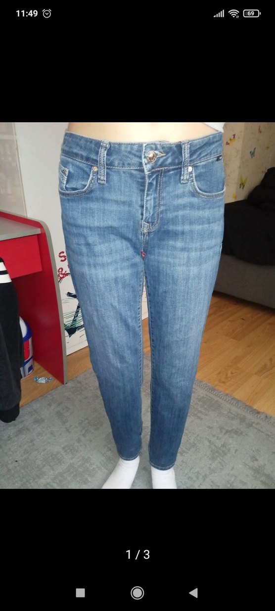 Mavi Düşük Bel Pantolon.26-27 beden.Uzunluk:85cm 165 boyla 45 kiloyla giyildi.