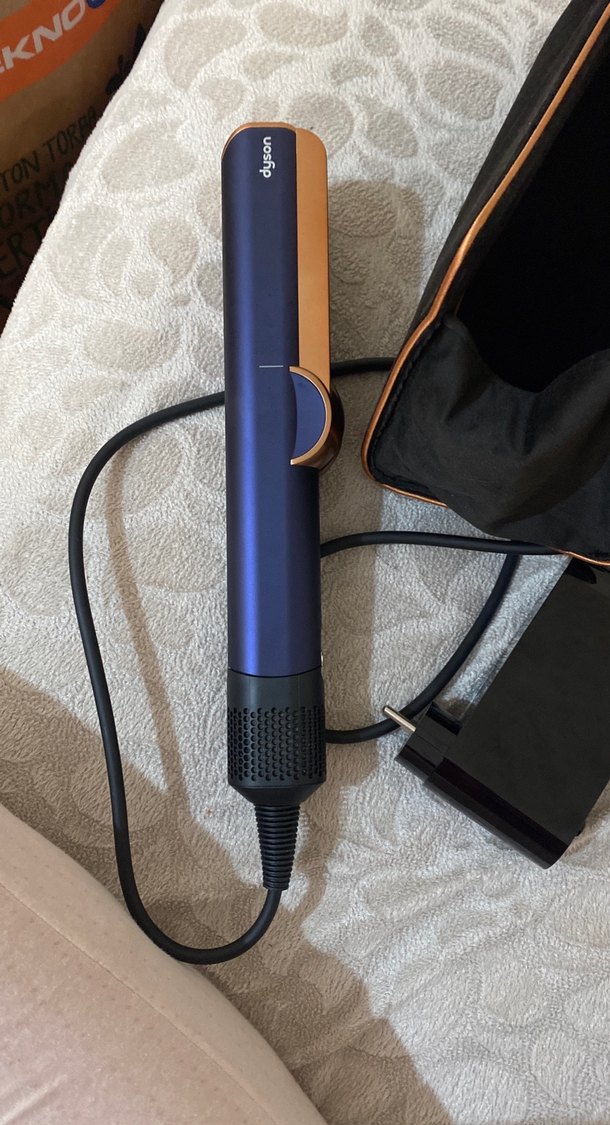 Koyu mavi Dyson saç düzleştirici, ısıya dayanıklı sap ve kullanımı kolay güç kablosu ile birlikte gelir. Koruyucu taşıma çantası dahildir. sadece 2 kez kullandım araç alıcam ürünlerimi satıyorum orijinal