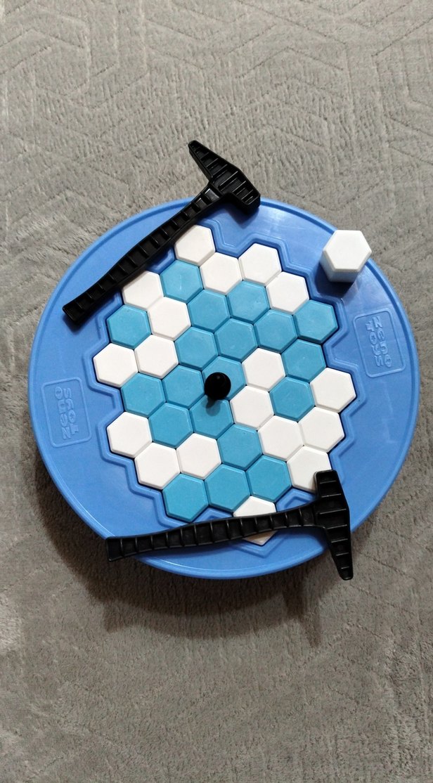 Mavi tabanlı, beyaz ve açık mavi altıgen parçalarla dolu eğitici oyuncak. İki siyah çekiç ile birlikte gelir.