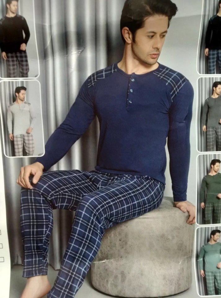Mavi ve gri tonlarda ekose desenli, uzun kollu düğmeli bisiklet yaka üst ve normal kesim pantolondan oluşan rahat ve modern erkek pijama takımı. S M L XL XXL BEDENLER İSTEDİĞİNİZ BEDENİ SORUNUZ , BİZDEN GELEN CEVABA GÖRE ÜRÜNÜ SATIN ALINIZ