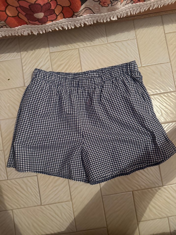 Mavi Ekose Desenli Mini Şort