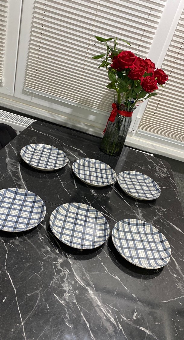 Mavi ekose desenli tabak hediye geldi kullanılmadı #tabak