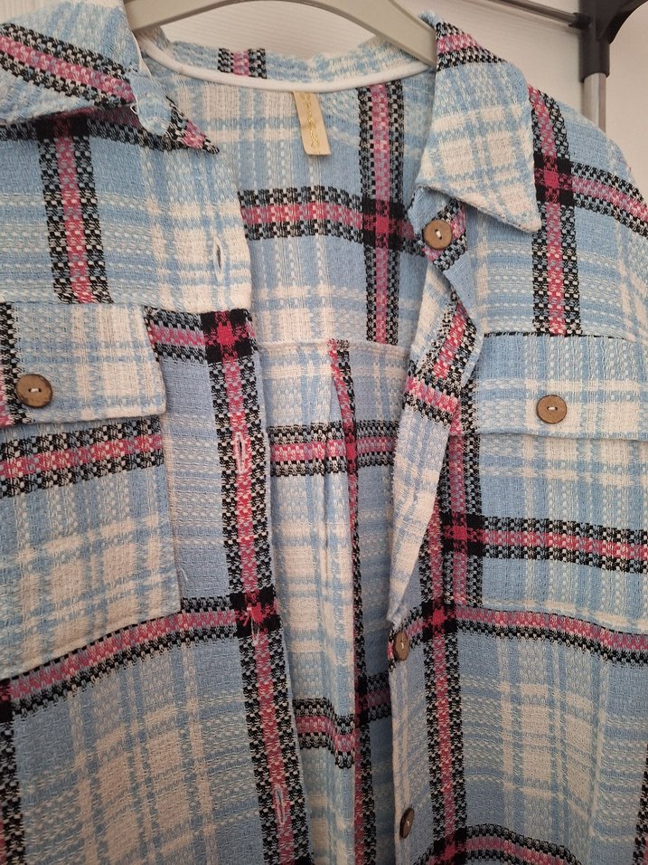 Mavi ekose desenli, düğmeli ve kesik yakalı kadın gömleği. Uzun kollu, regular fit ve sentetik kumaştan, rahat bir kullanım sunar.