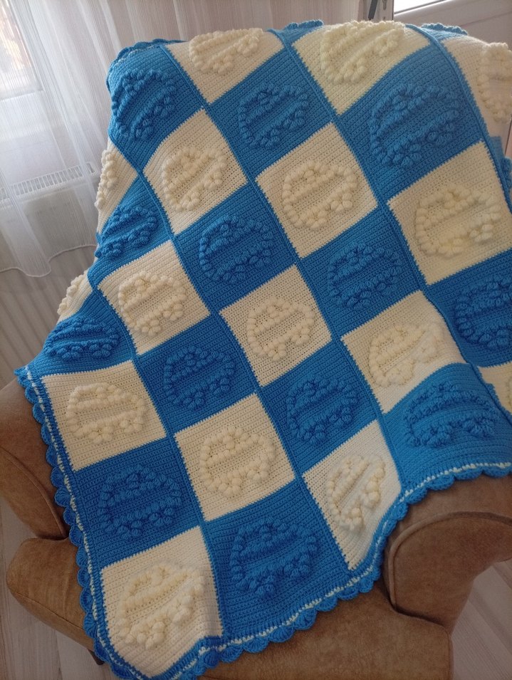 Mavi Ekose Örgü Çocuk Battaniyesi