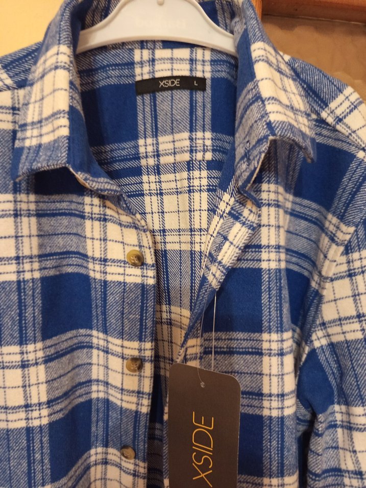 Mavi beyaz ekose desene sahip, pamuklu kumaştan yapılmış, düğmeli ve kesik yakalı kadın gömleği. Uzun kollu, bol kesim ve midi boyda, günlük rahat kullanıma uygun.