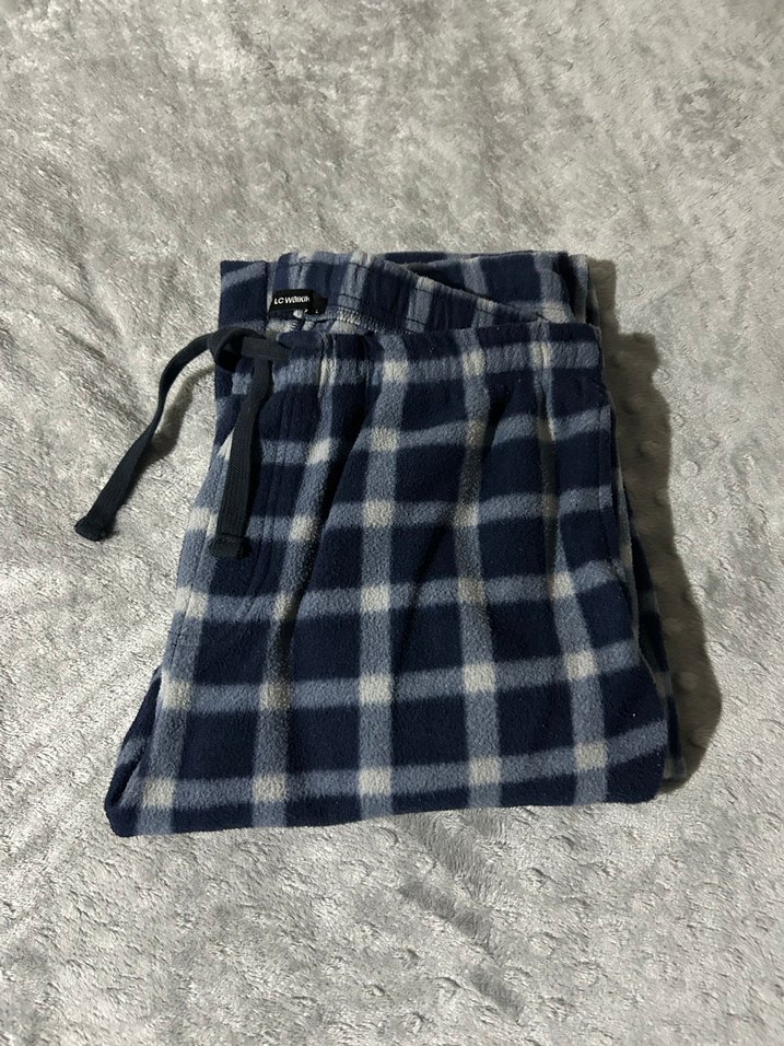 Mavi Ekoseli Belden Bağlamalı Rahat Pijama Altı