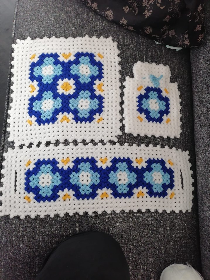 Çiçek desenli mavi el örgüsü banyo süngerleri seti, yumuşak ve emici dokusuyla banyo için uygundur.