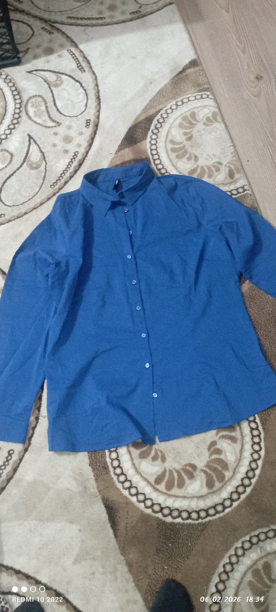 Mavi esnek kumaş kadın gömlek, uzun kollu ve düğmeli. Yaka kısmı yakalı, rahat ve normal boyda, günlük kullanım için uygundur.ışıktsn dolayı rengi açık görünüyor fotoğrafta ama biraz daha koyu bir renk