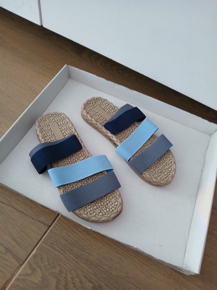 mavi ve gri tonlarda bağlama desenli elastik bantlı rahat dokulu tabanıyla günlük kullanıma uygundur. hiç kullanılmamış 37 numara