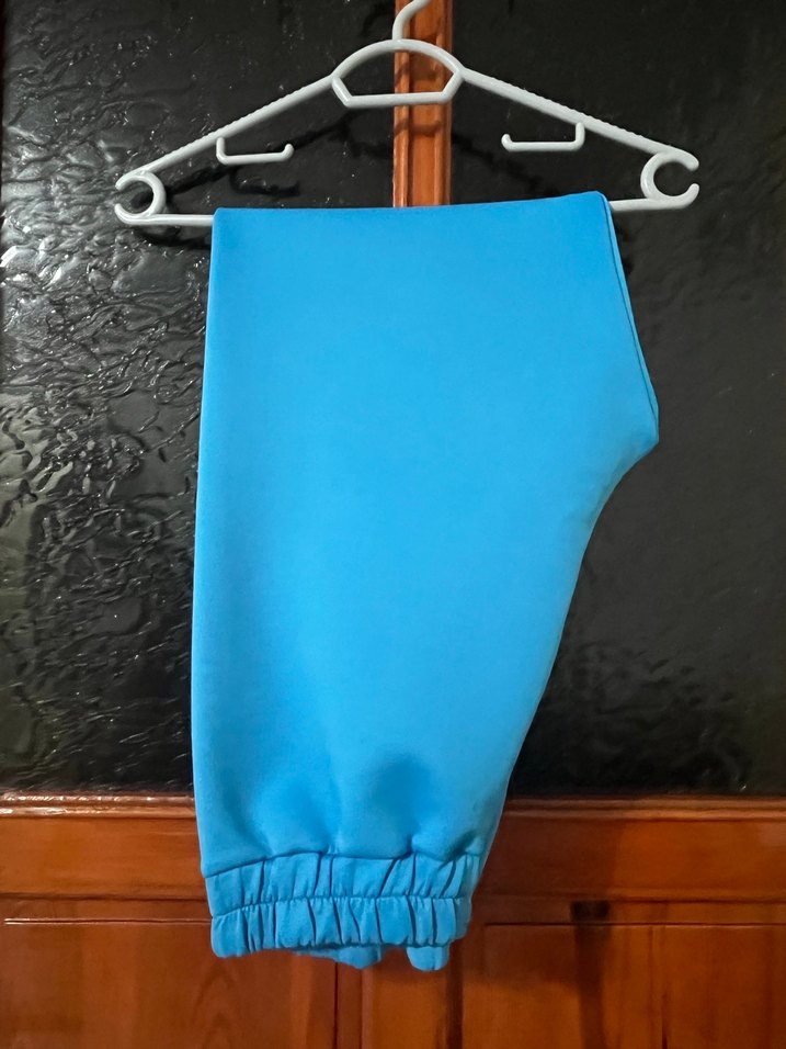 Mavi, elastik bel bantlı, midi boy, dar kesim kadın spor pantolonu. Athleisure ve streetwear tarzına uygun, rahat ve şık. ♀️özel dikimdir