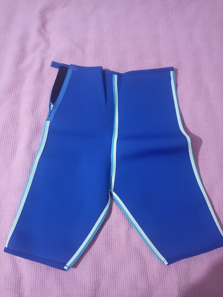 Elastik bel bantlı, sportif mavi renkli, kısa kesim hamile şortu. Rahat ve sade tasarımıyla spor için uygundur.