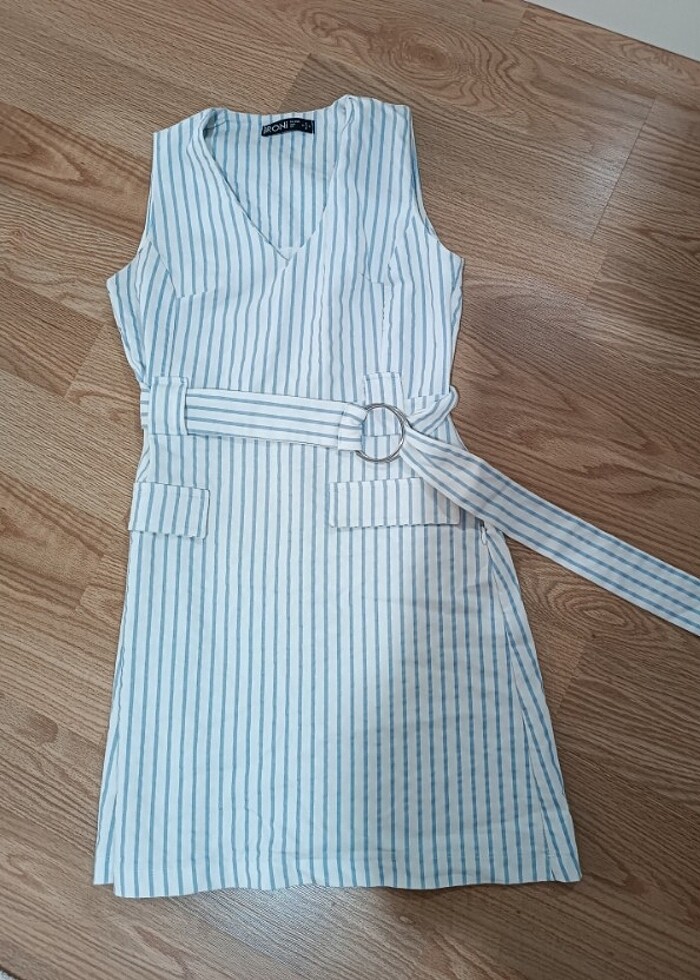Yandan gizli fermuarlı herhangi bir kusuru yok pamuklu bir kumaşı var. Yaz aylarında her yerde giyinebilir şık ve güzel bir elbise.
