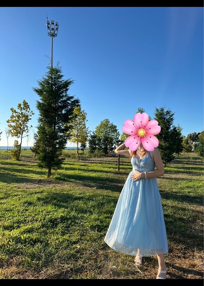 Çok tatlı prenses gibi hissettiren mavi,arkadan bağcıklı elbise.Sorunsuz sadece bir kere bride partysinde giyildi
