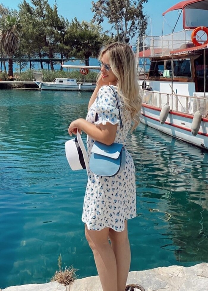 Mavi elbise ve çanta