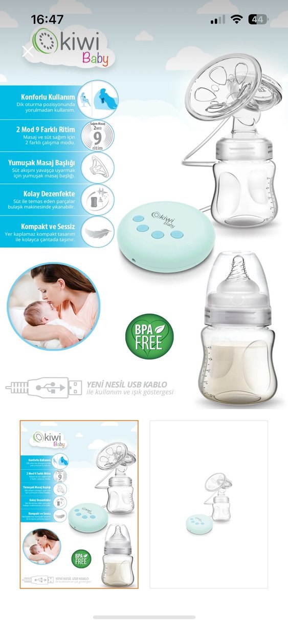 Kiwi markasının elektirikli göğüs pompası elim ayağım oldu çok kullanışlı şuan ihtiyacım kalmadığı için satıyorum hiçbir deformesi yok