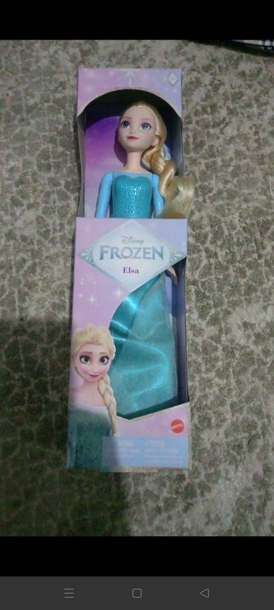 Pastel mavi renkte Elsa bebek, Disney Frozen temasında parıltılı elbisesiyle kutusunda sunuluyor. ❄️