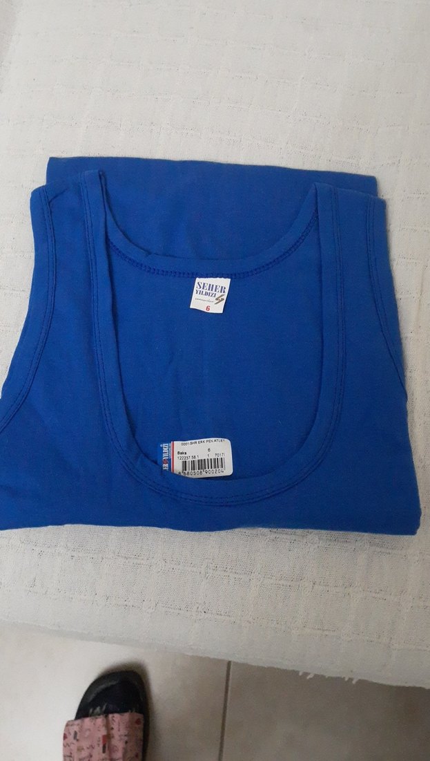 Bu erkek atleti normal boy uzunluğa sahiptir. Düz mavi renkte olup rahat ve sade bir athleisure tarz sunar.