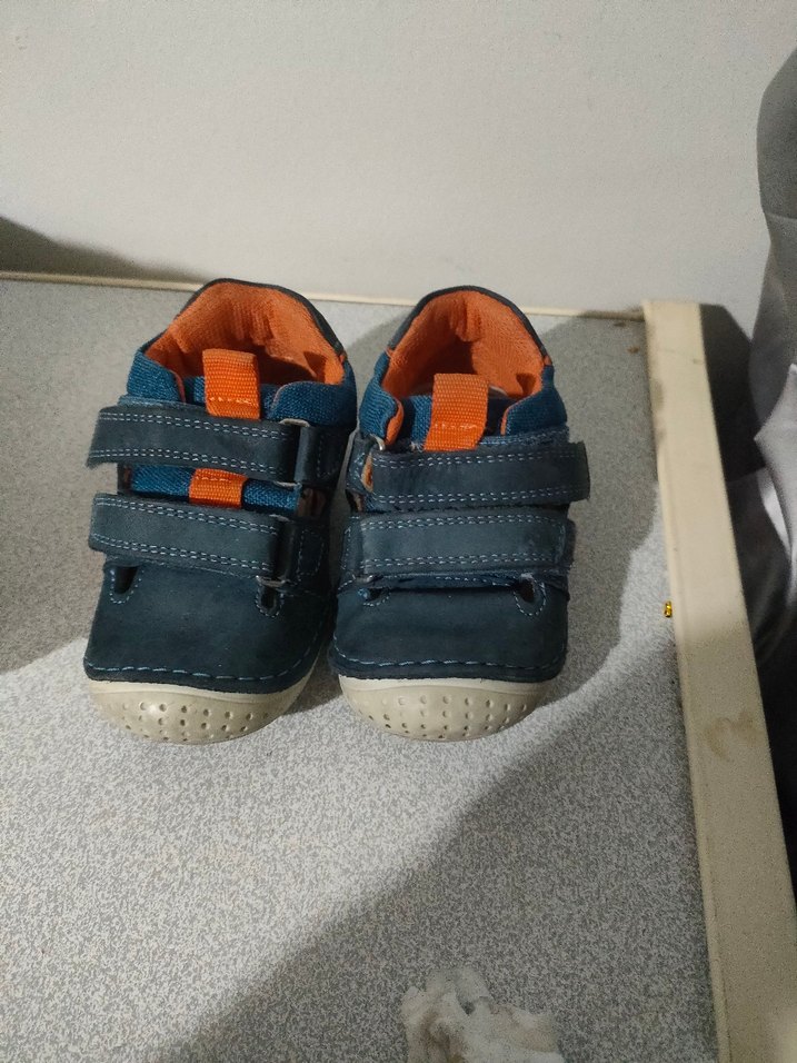 Mavi renkli, kaymaz tabanlı ve cırt cırtlı erkek bebek ilk adım ayakkabısı. Rahat ve günlük sokak stili için uygundur.