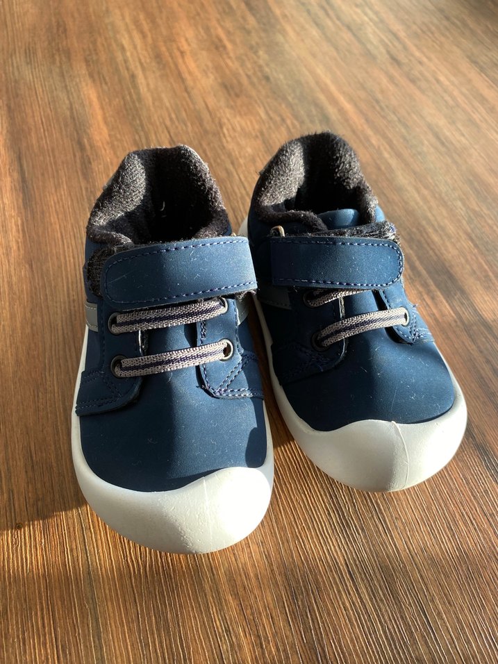 Mavi renkte, cırt cırtlı ve lastik tabanlı erkek bebek ilk adım ayakkabısıdır. Gri detayları ve sade normcore stiliyle günlük kullanıma uygundur.