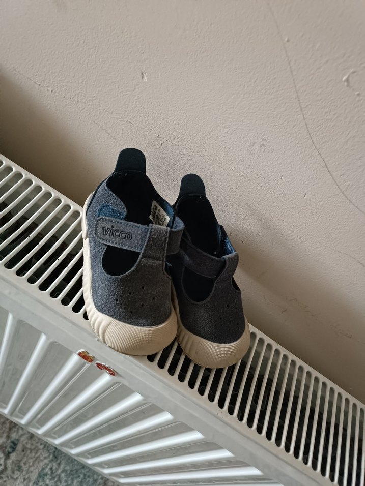 Mavi renkli, lastik tabanlı erkek bebek ilk adım ayakkabısı, Velcro bantlı, trend sokak tarzına uygun sade tasarım.
