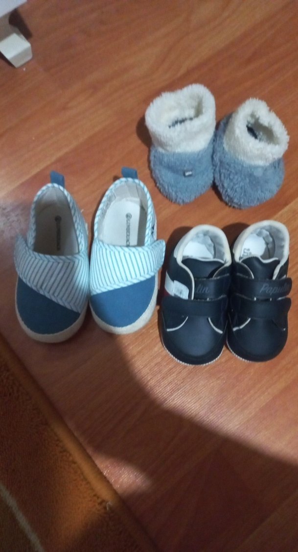 Mavi renkli, kaymaz tabanlı ve velcro bantlı erkek bebek ilk adım ayakkabısı. Trendy ve normcore tarzda, gri tonlarda sade tasarım.