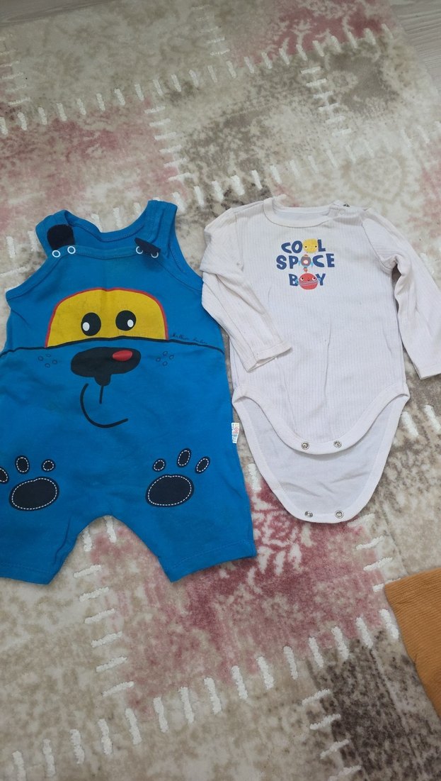 Mavi Erkek Bebek Kolsuz Tulum ve Uzun Kollu Body