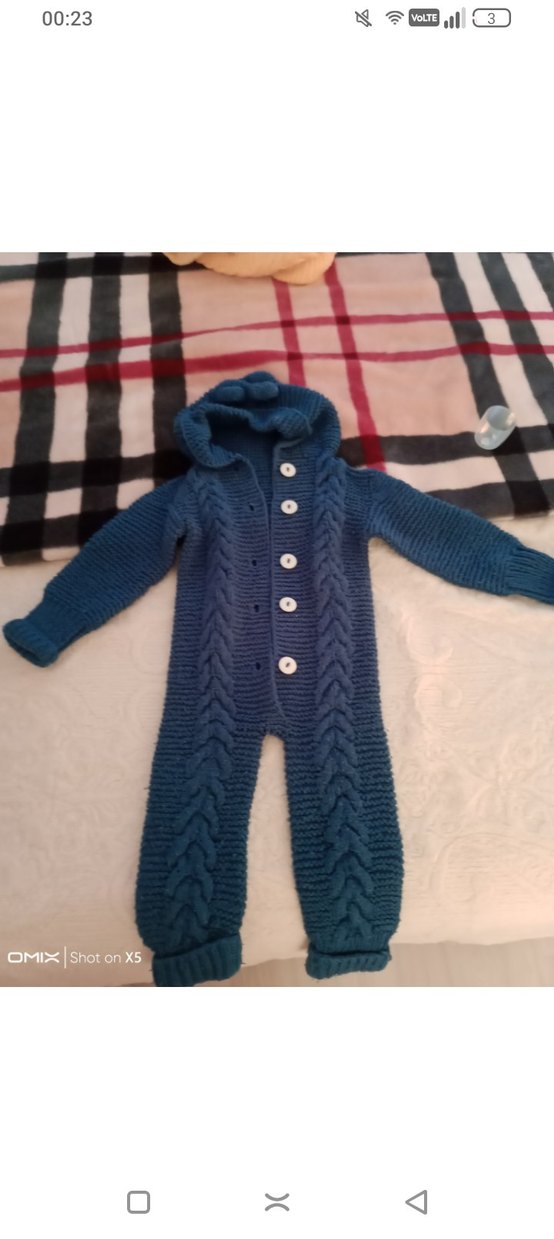Mavi Bebek Örgü Tulum 6 12 ay arası