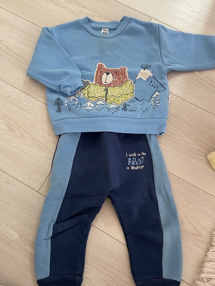 Mavi Erkek Bebek Örme Sweatshirt ve Pantolon Takımı