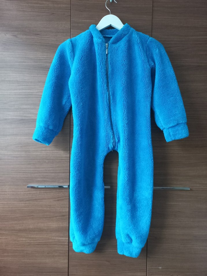 Renkli mavi erkek bebek tulumu, polar dokusu ve ön fermuar kapamalı yumuşak, sıcak kumaştan üretilmiştir. Yaş 3-5 Ölçüleri fotoğraftadır.