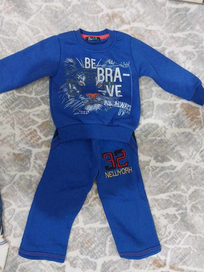 Yumuşak ve sıcak kumaştan üretilmiş, uzun kollu ve yuvarlak yakalı erkek bebek takımı. Renkli baskılı desen ve kolay kullanım için cırt cırtlı detaylar içerir.