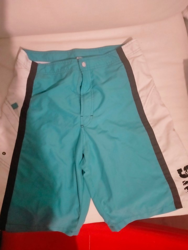 Hafif mavi renkli, bel detaylı ve vücuda oturan kesime sahip erkek deniz şortu. Sentetik kumaştan, plaj ve sokak stili için uygun.