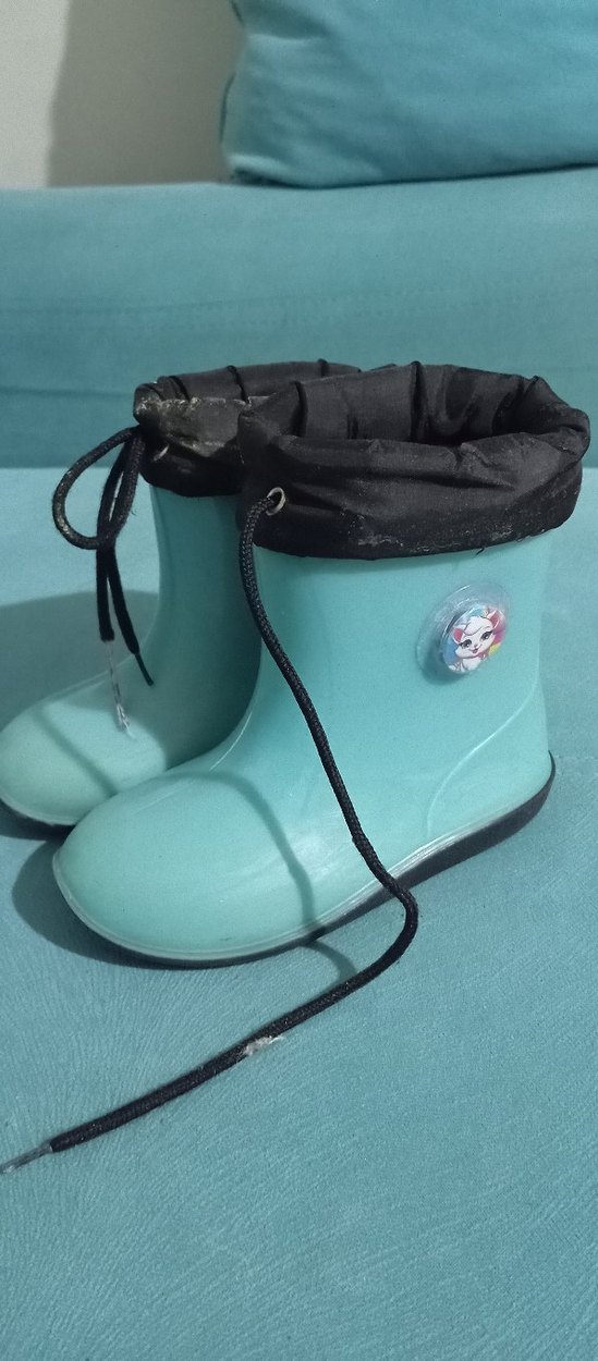 Pastel mavi kauçuk erkek çocuk botları, cırt cırtlı kapama ve siyah bağcık detaylı. Düz ve sokak stili için uygun. 22-23 uygun
