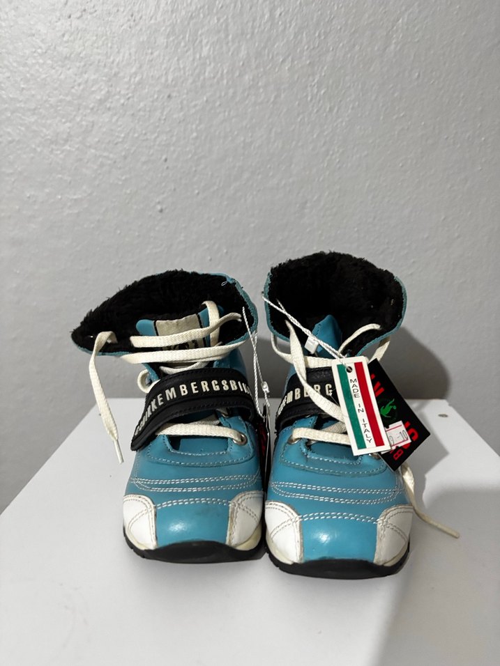 Velcro bantlı ve bağcıklı mavi erkek çocuk botu, yumuşak iç astar ve dayanıklı kauçuk taban içerir.