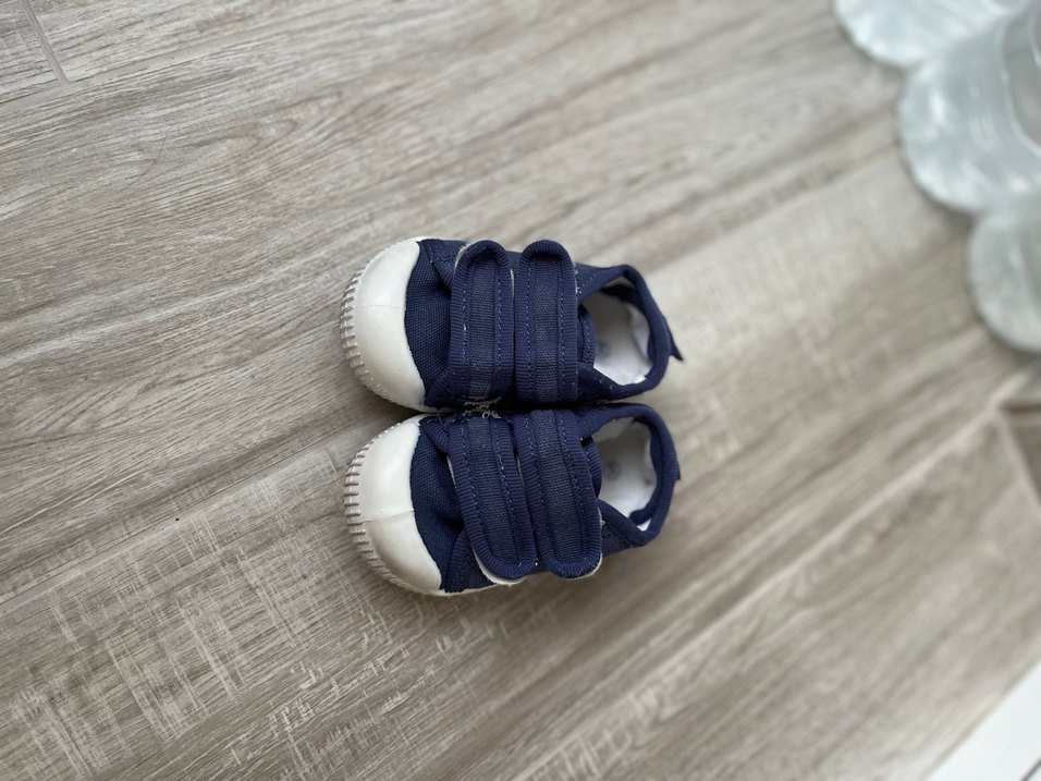 Mavi renkli, kauçuk tabanlı ve cırt cırtlı erkek çocuk spor ayakkabısı. Sade ve desensiz, normcore tarzda.