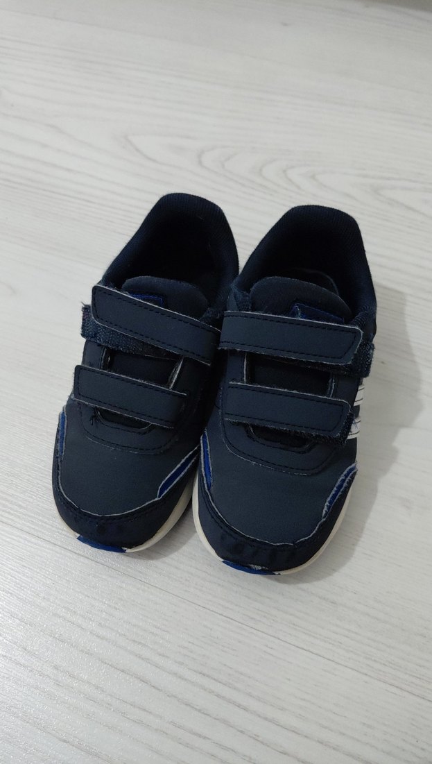 Koyu mavi renkte, cırt cırtlı bantlara ve kauçuk tabana sahip, sade sokak tarzı erkek çocuk spor ayakkabısı. Rahat ve kolay giyilir.