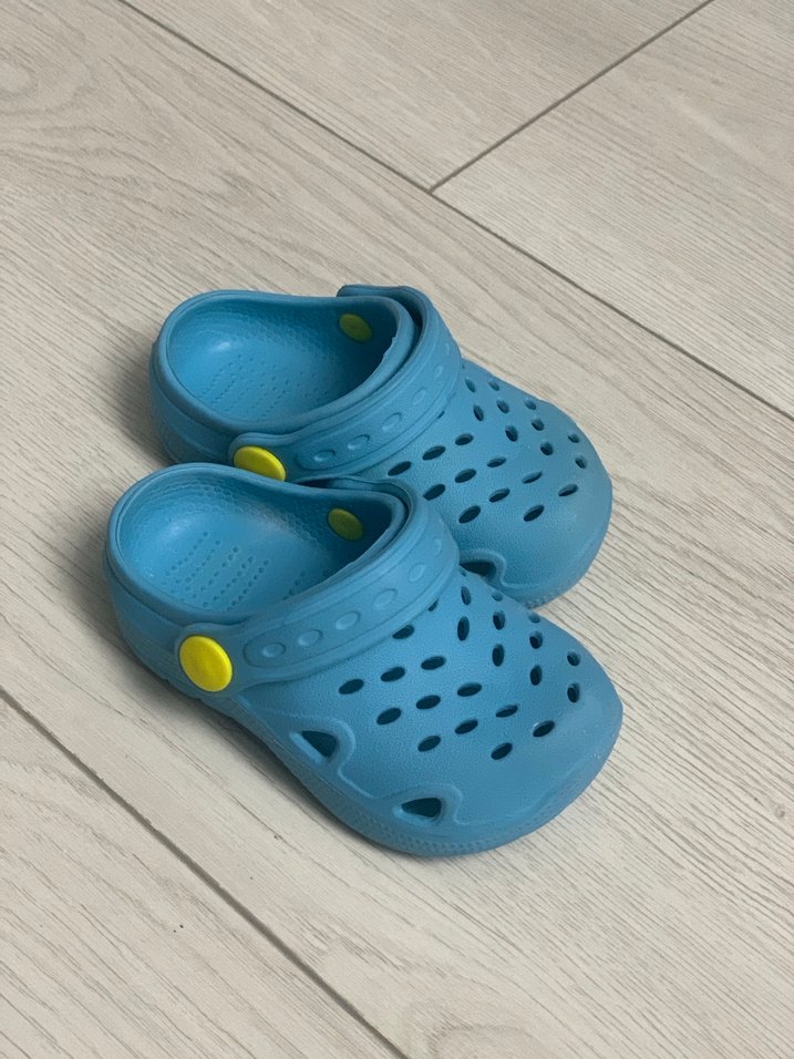 Mavi renkte, lastik malzemeden yapılmış, cırt cırtlı bantlı erkek çocuk terliği. Havalandırma delikleriyle sade ve rahat bir tasarıma sahiptir.