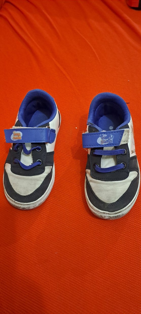 Erkek çocuklar için renkli tie-dye desenli, mavi cırtcırtlı ve kauçuk tabanlı spor ayakkabı. 27 numara kullanilmis