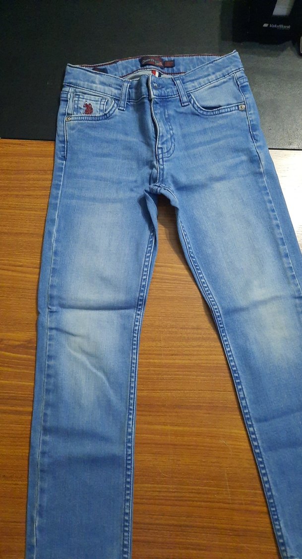 7-8 yaş 122-129 cm mavi erkek çocuk slim pantolon. temiz üründür. arka cepte fotoda göründüğü kadar minik takılma olmuştur.