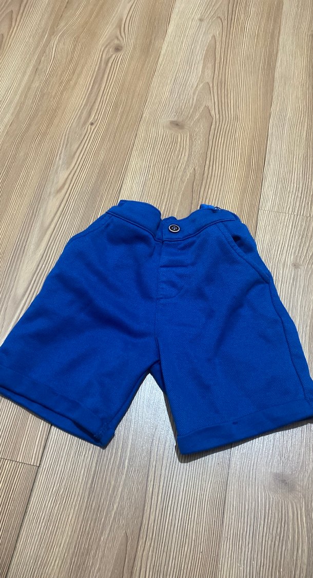 Mavi renkli, düğmeli ve bol kesim erkek çocuk şortu. Yumuşak ve sıcak kumaştan, sade ve renkli sokak tarzı şort.