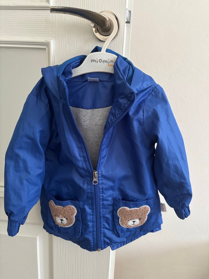 Temiz kullanıldı. Herhangi bir deformesi yok. Düğmeli, ceplerinde ayı figürlü, mavi renk erkek çocuk yağmurluğu. Rahat kesim ve yumuşak, sıcak kumaştan üretilmiştir.