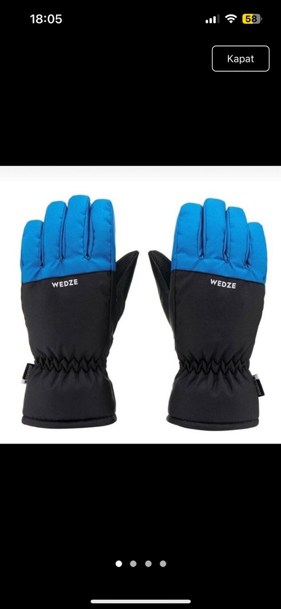 Wedze marka mavi erkek çocuk eldivenleri, yumuşak ve sıcak kumaş ile Velcro bant içerir. Sokak stili, koyu tie-dye desenlidir.