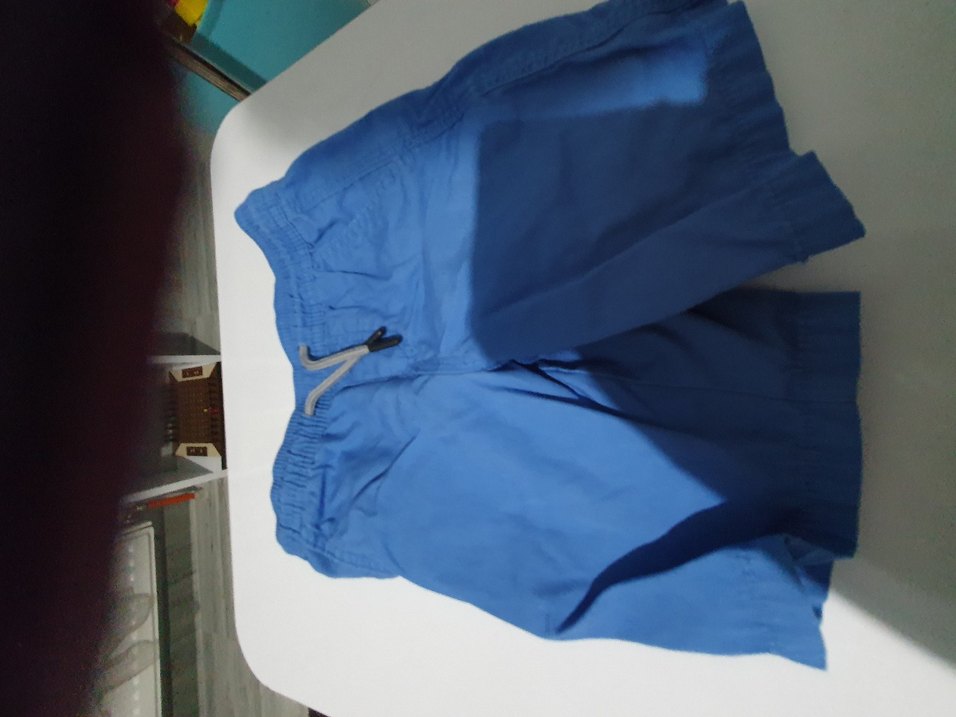 Parlak mavi renkte, fermuarlı cepleri olan, sentetik kumaştan üretilmiş, bol kesim erkek çocuk eşofman altı.