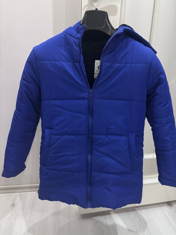 Fermuarlı önü ve çentikli yakası olan, renkli mavi ve yumuşak sıcak kumaştan yapılmış erkek çocuklar için dar kesim mont.